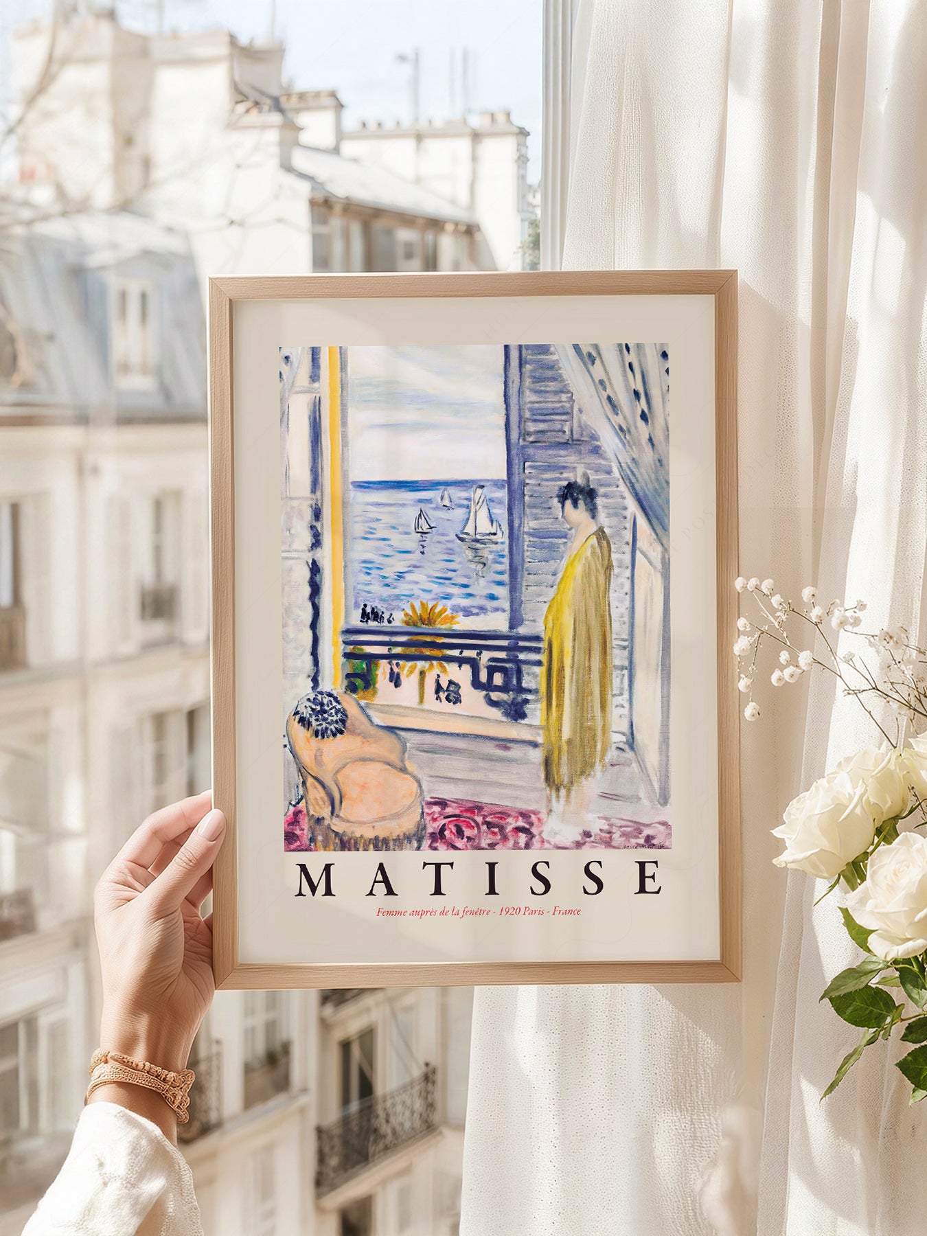Femme auprès de la fenêtre or Woman By The Window painting by Henri Matisse showcases an intense energy to the window motif, an old favourite theme.