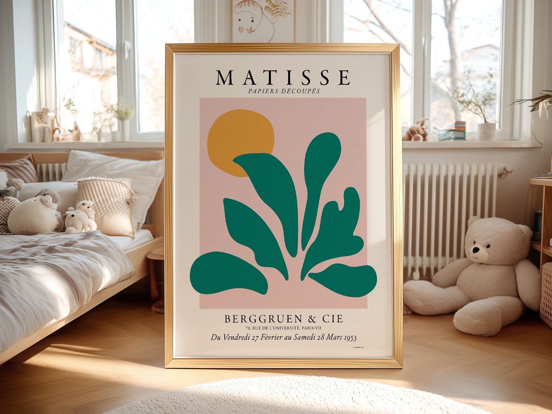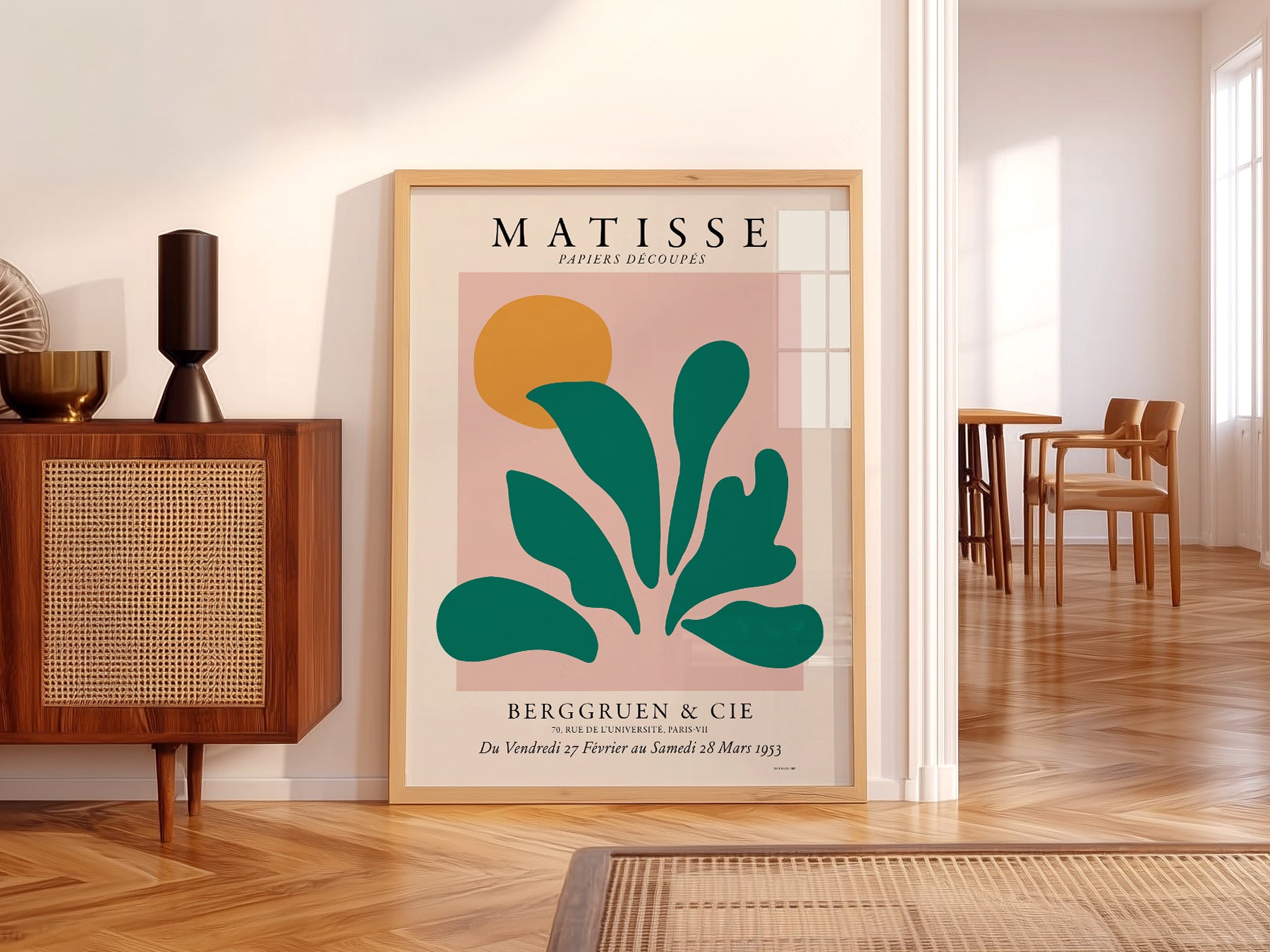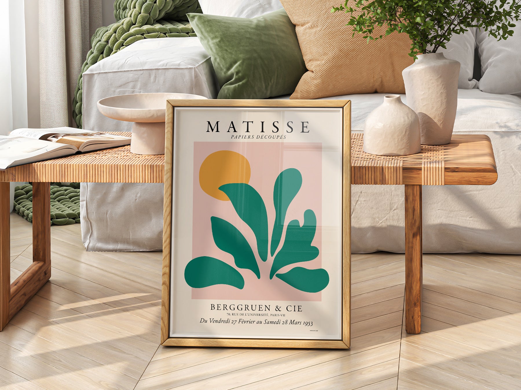 Evoke a sense of mid-century sophistication with this Matisse-inspired art print. Featuring the iconic "Papiers Découpés" style, this piece showcases abstract botanical shapes in a harmonious palette, perfect for adding a touch of gallery elegance to any space.