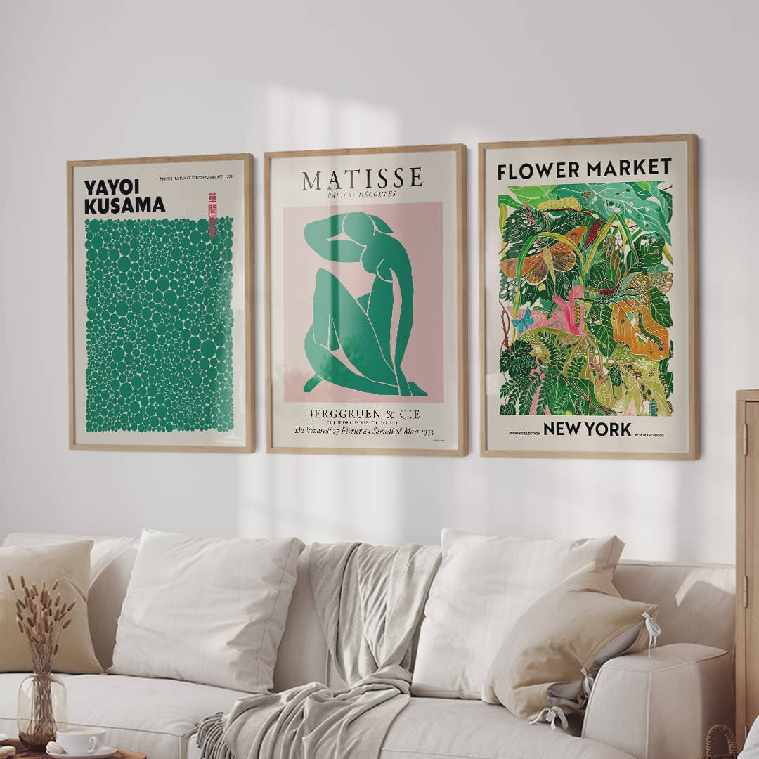 Modern Gallery Wall, Set of 3 Prints, Henri Matisse, Yayoi Kusama, Flower Market New York