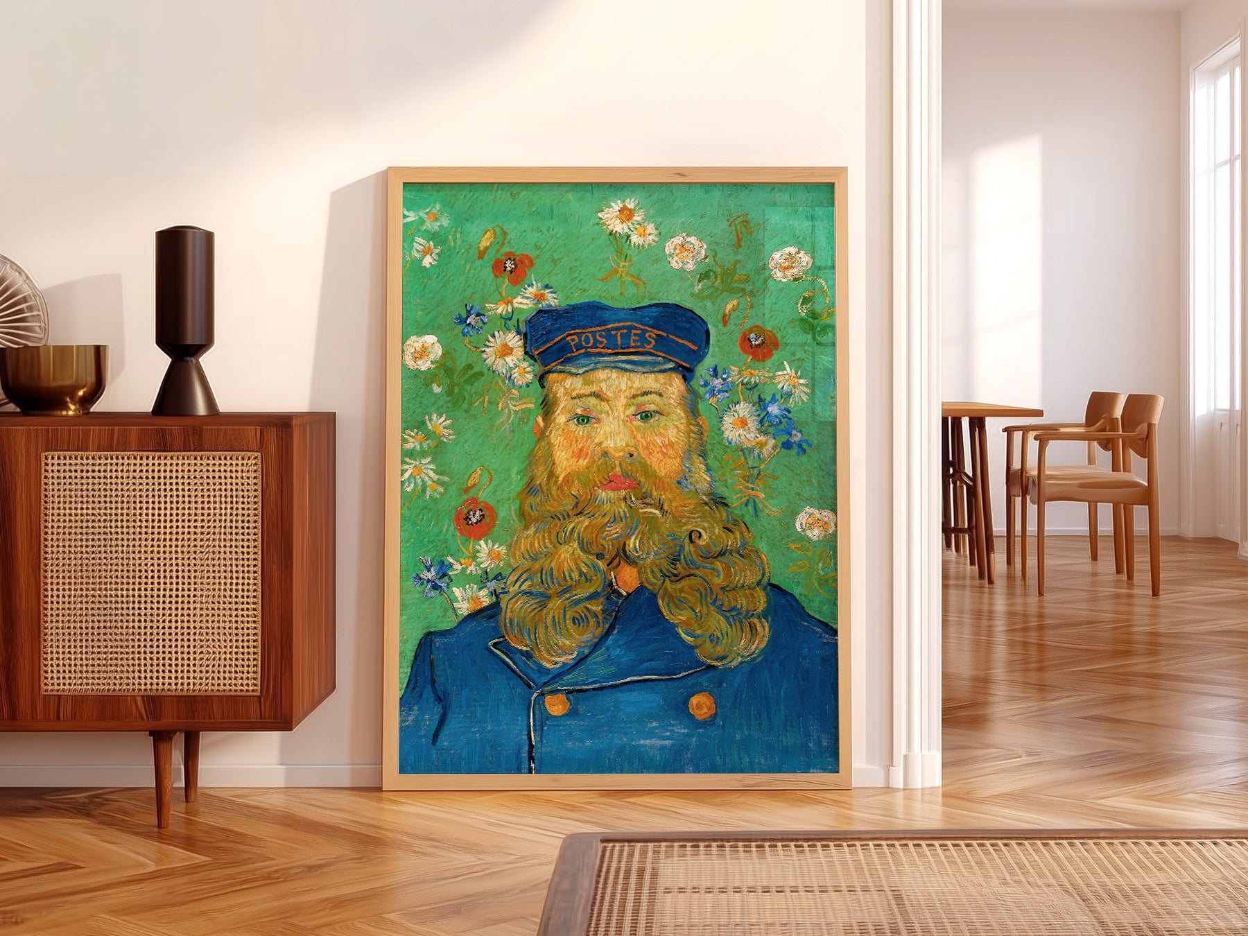 This poster with contrasting colours, such as the intense blues and vibrant yellows, is a beautiful reproduction of The Bedroom, a masterpiece by Post-Impressionist artist Vincent van Gogh. Painted in 1889, it is one of the most iconic works in art history.