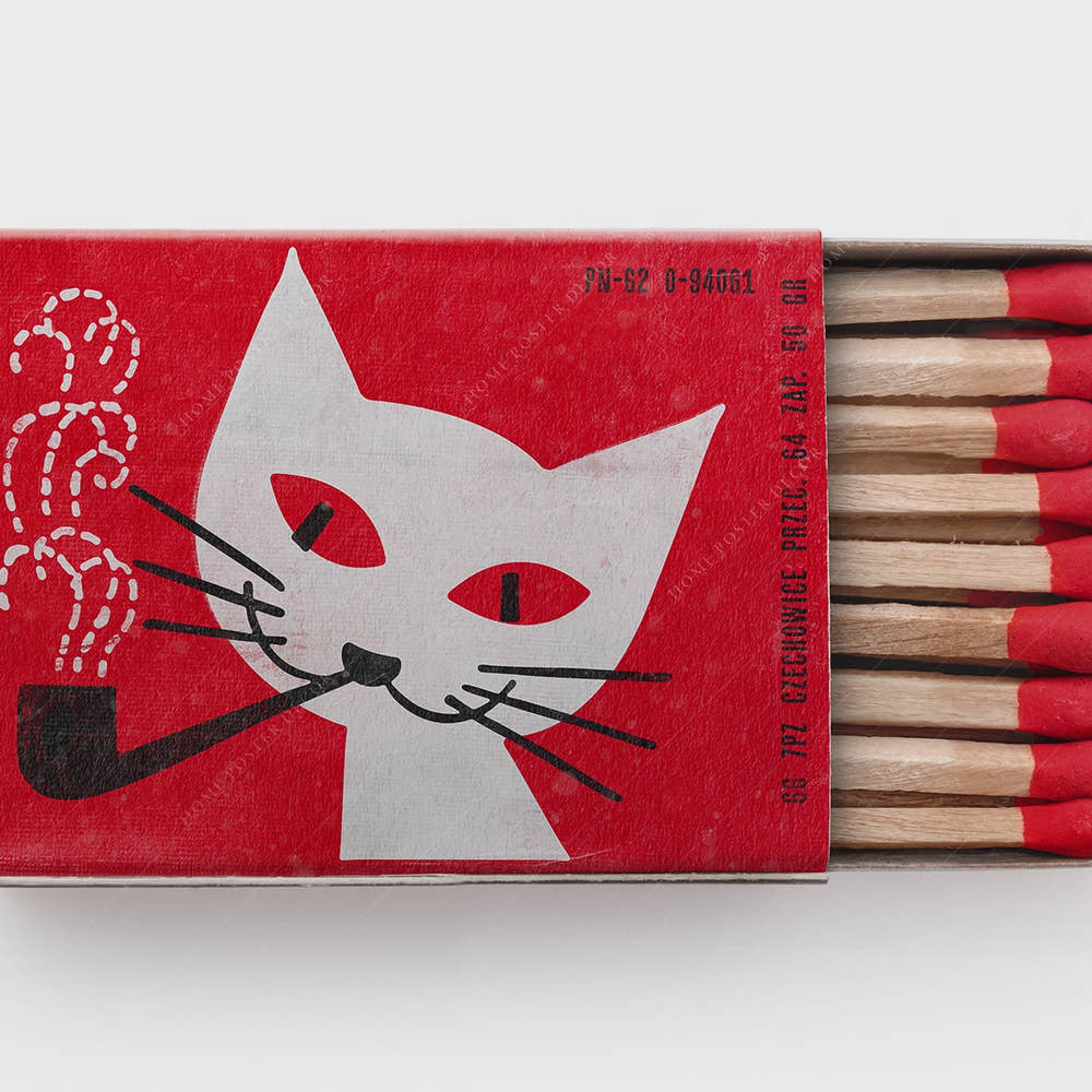Vintage matchbox wall art - The Black Cat, Red Background