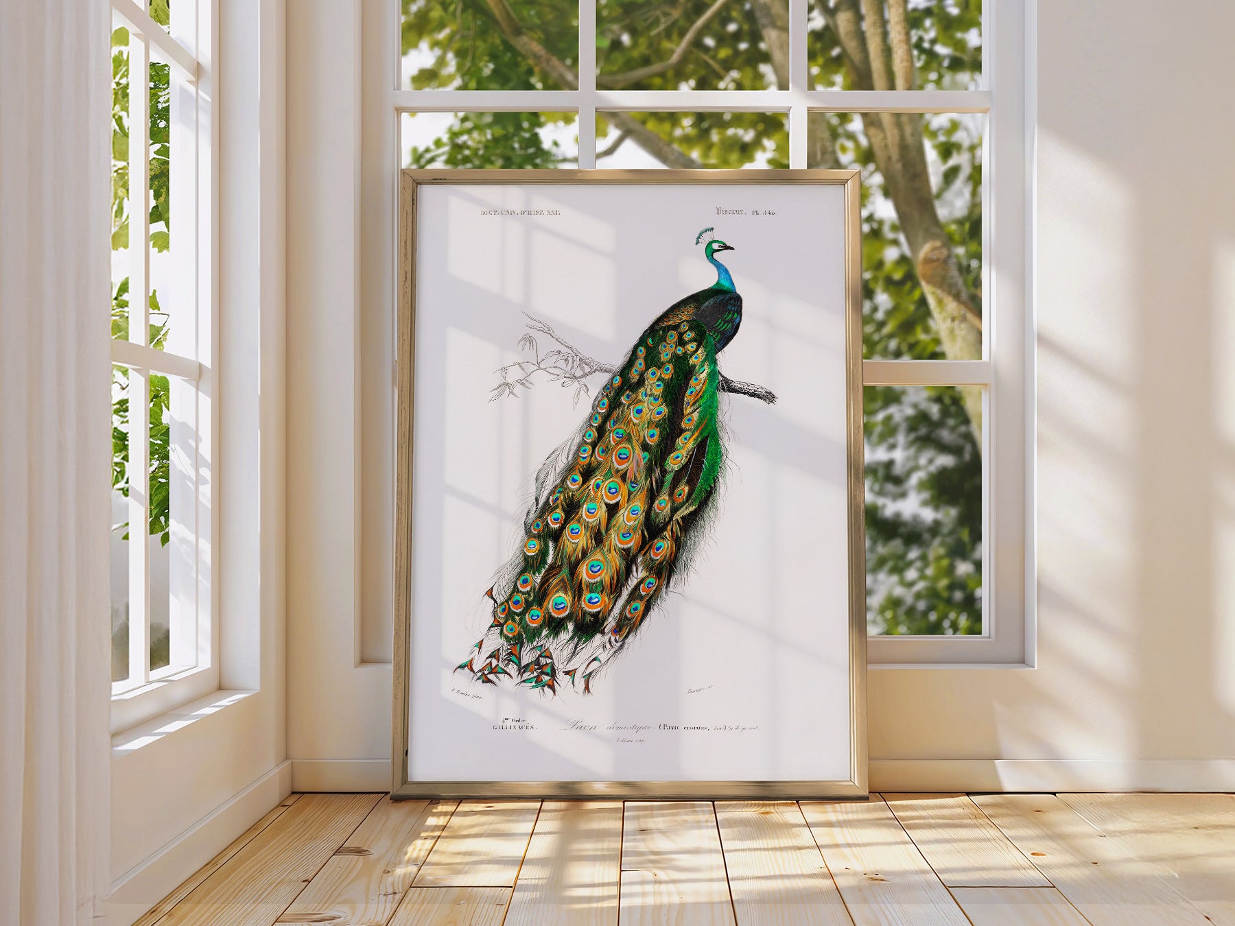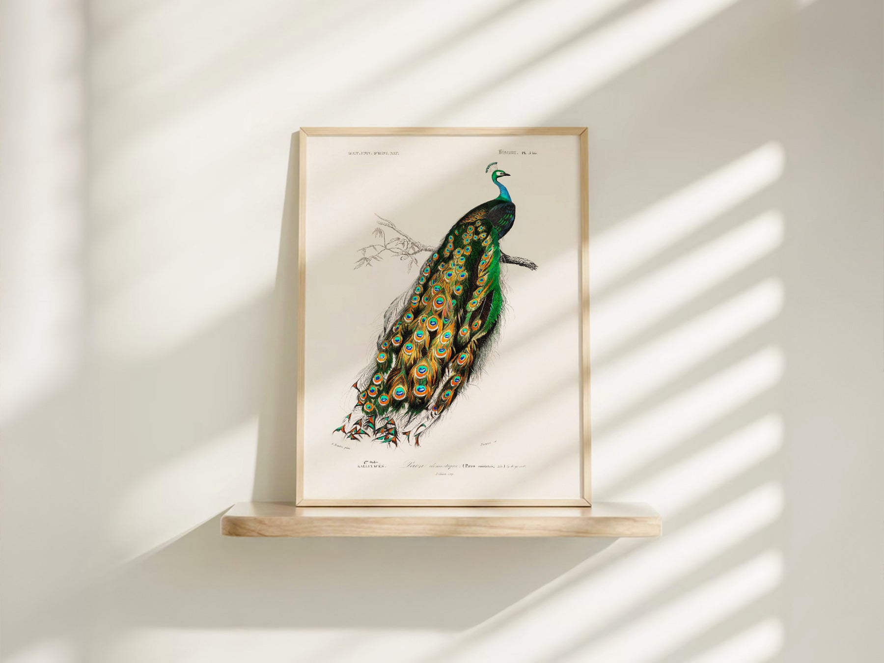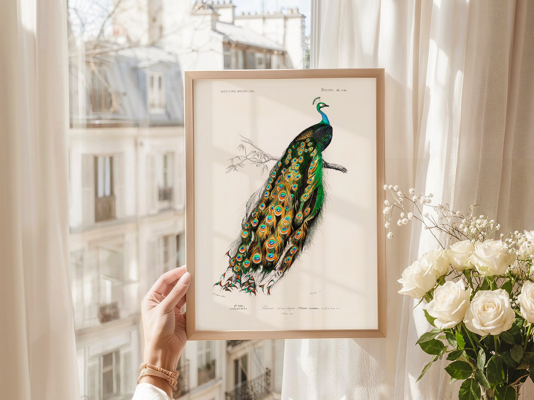 Elevate your space with our Vintage Peacock Print, a stunning antique birds painting that exudes elegance and timeless beauty. Printed on high-quality paper, this classic artwork captures the intricate details and vibrant colors of the majestic peacock, making it the perfect addition to any room seeking a touch of vintage charm and sophistication.
