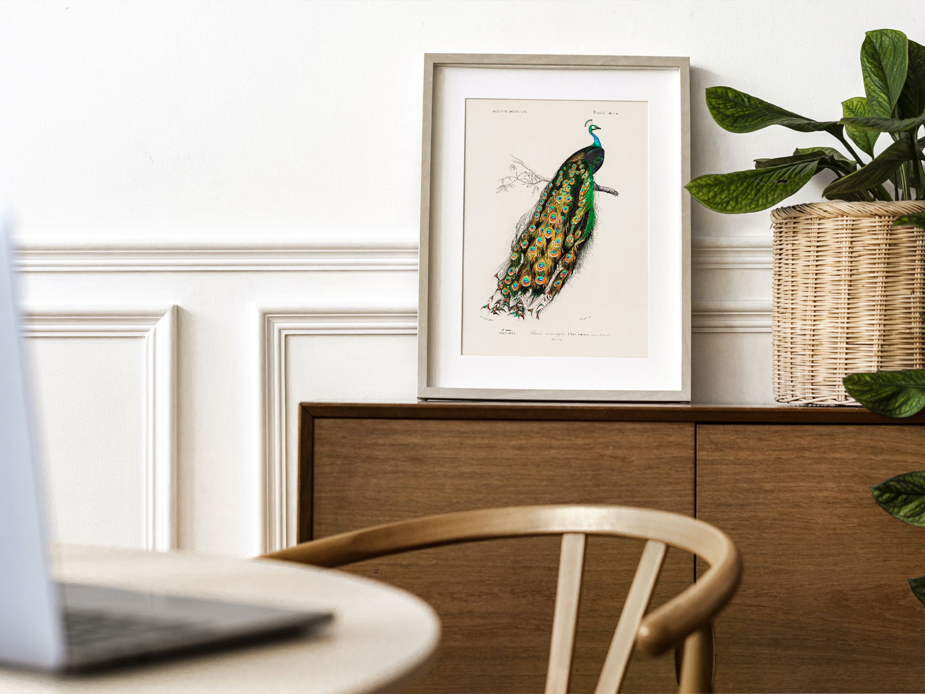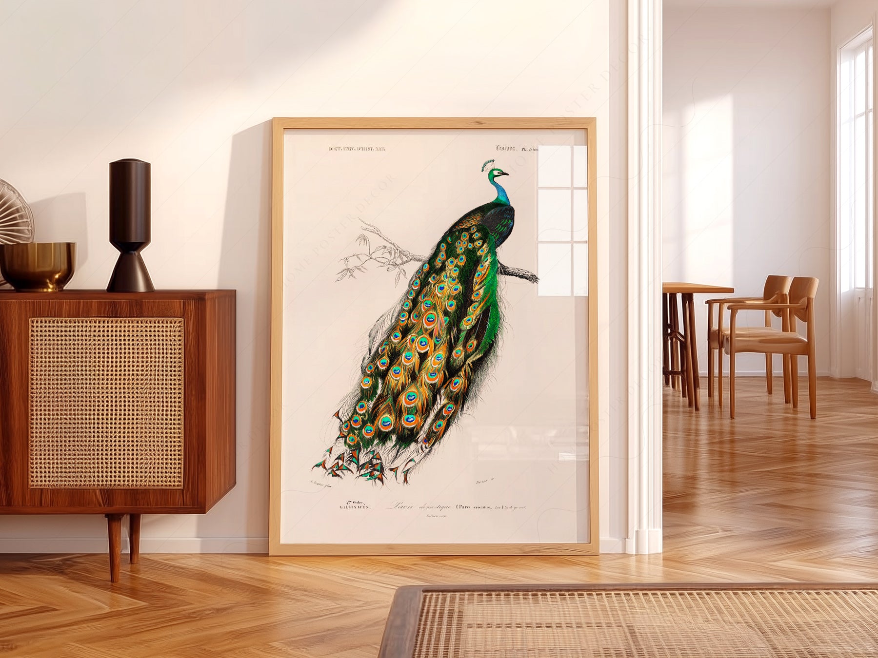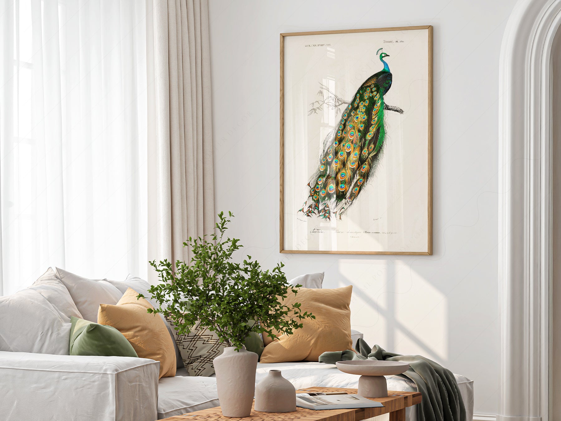 Elevate your space with our Vintage Peacock Print, a stunning antique birds painting that exudes elegance and timeless beauty. Printed on high-quality paper, this classic artwork captures the intricate details and vibrant colors of the majestic peacock, making it the perfect addition to any room seeking a touch of vintage charm and sophistication.